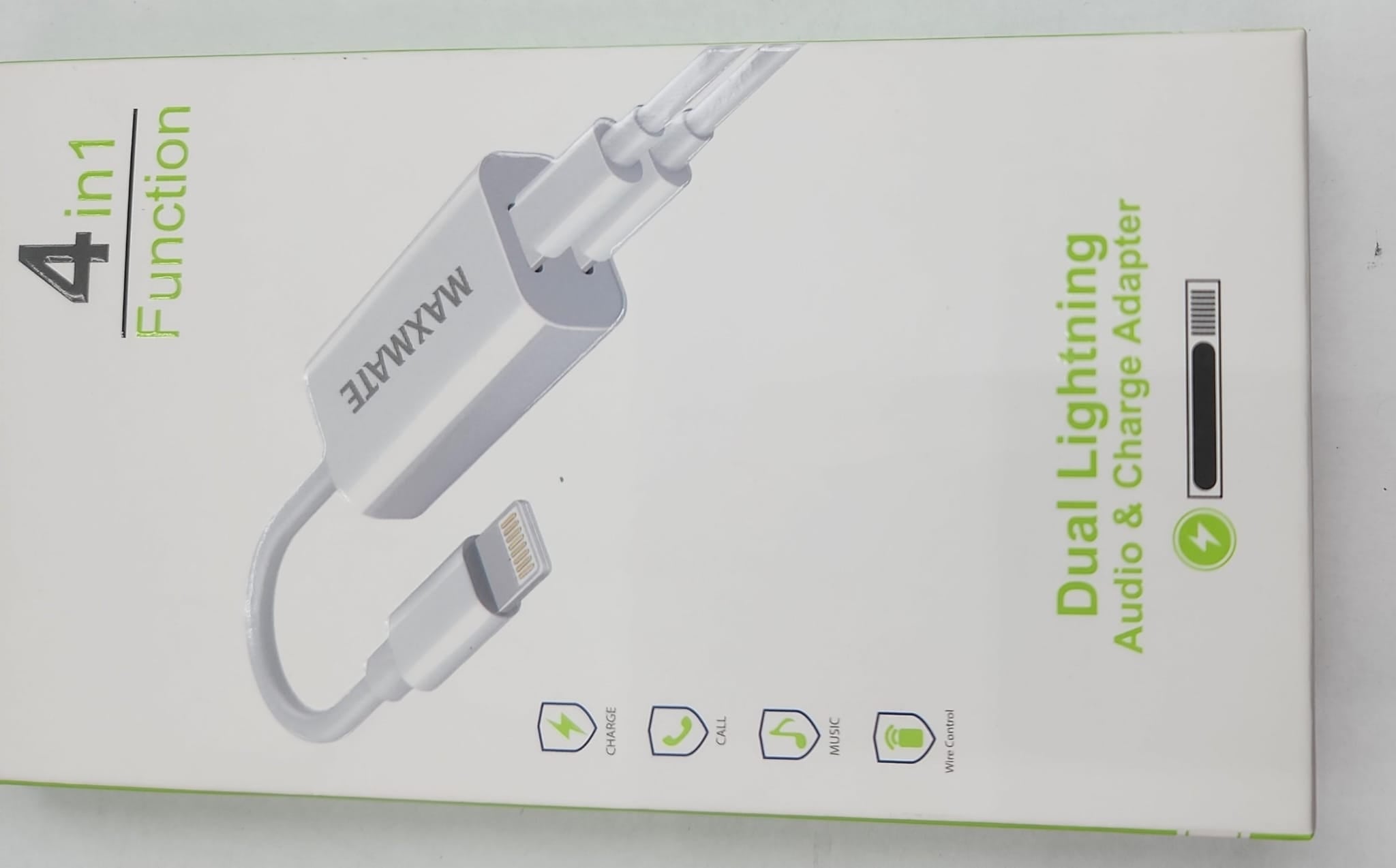 dual lightning adaptor.carge and music at the same time .support audio output,headset call,headset controller,charging and data sync.