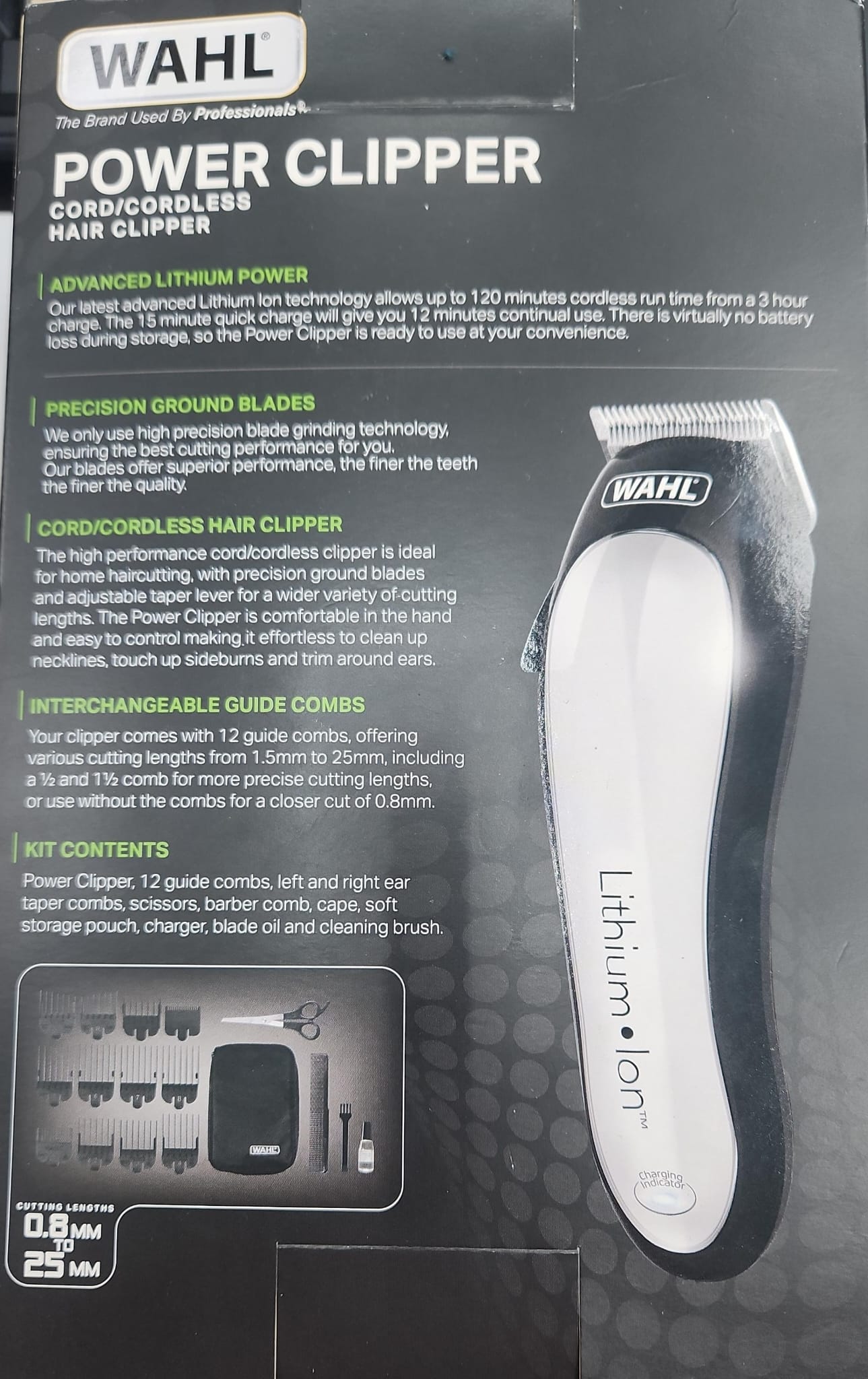 Wahl power clipper 0.8 to 25mm cord/cordless hair clipper.