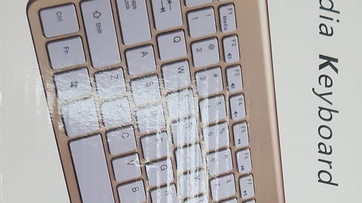 Wireless keyboard and mouse compatible with Mac and Windows. No batteries included.
